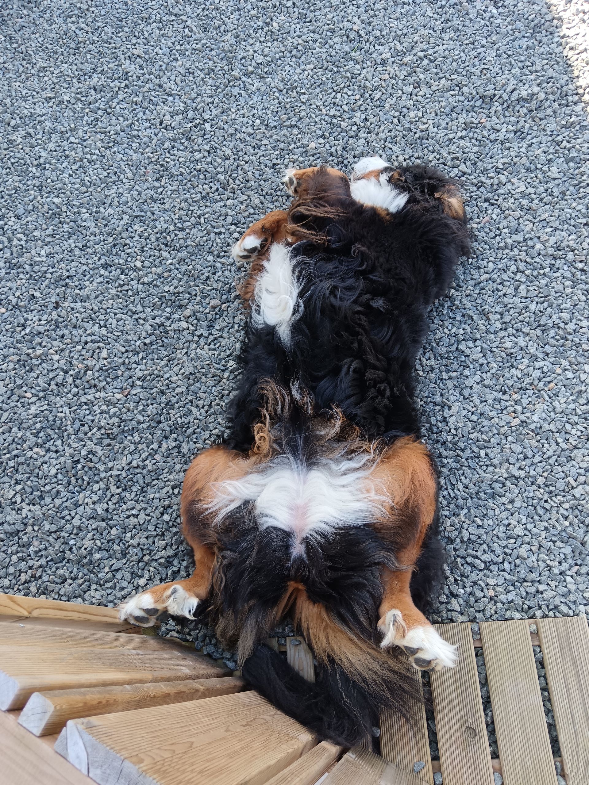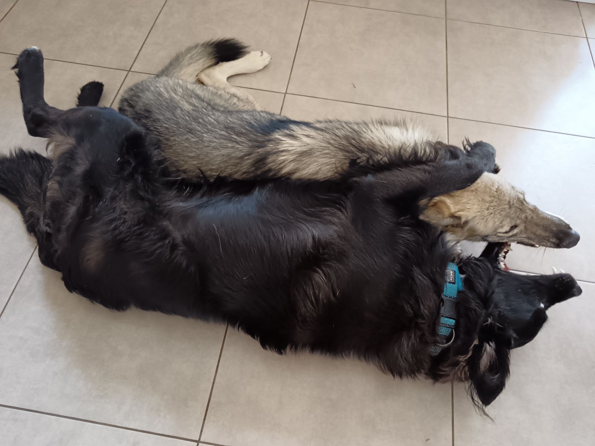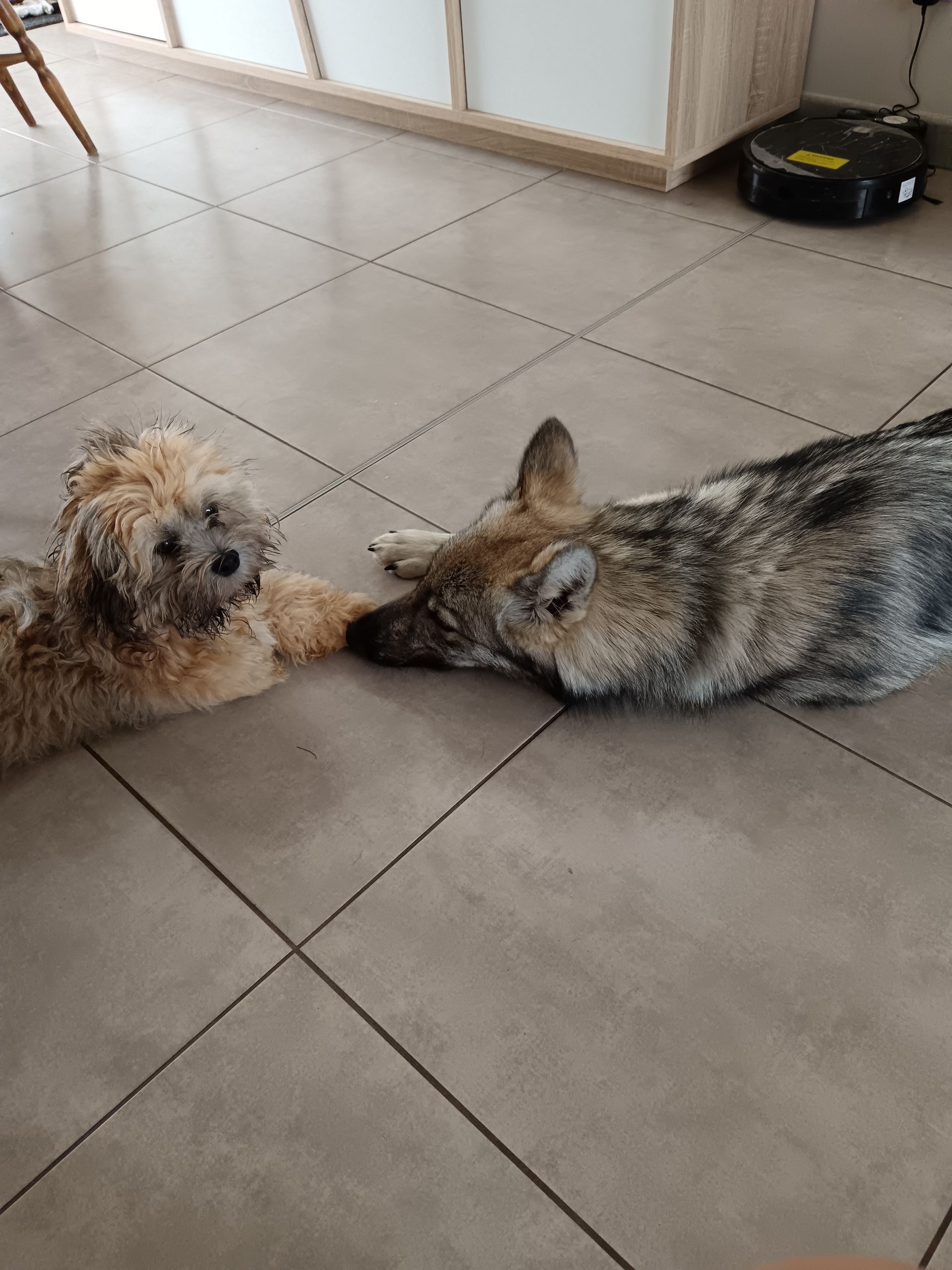 Dans la maison, les chiens ont accès au salon à la cuisine ouverte et au couloir. Les chambres, les toilettes et la salle de bains leur seront interdites. Le garage est utilisé comme une « salle de séchage » en cas de pluie ou de séance de piscine prolongée (l’été uniquement).